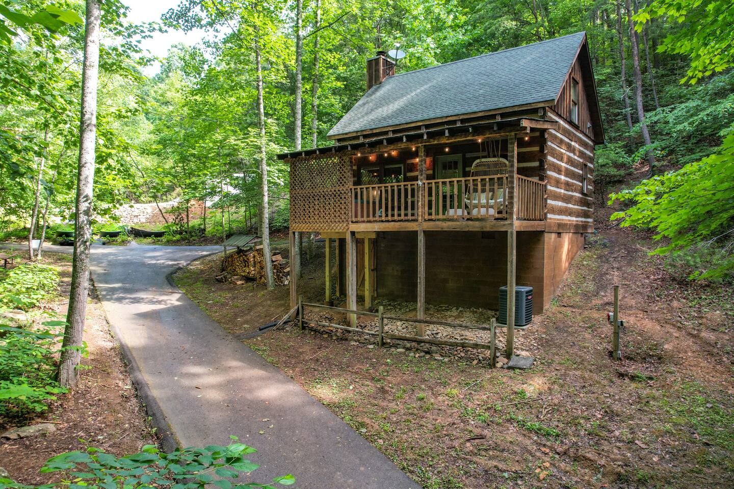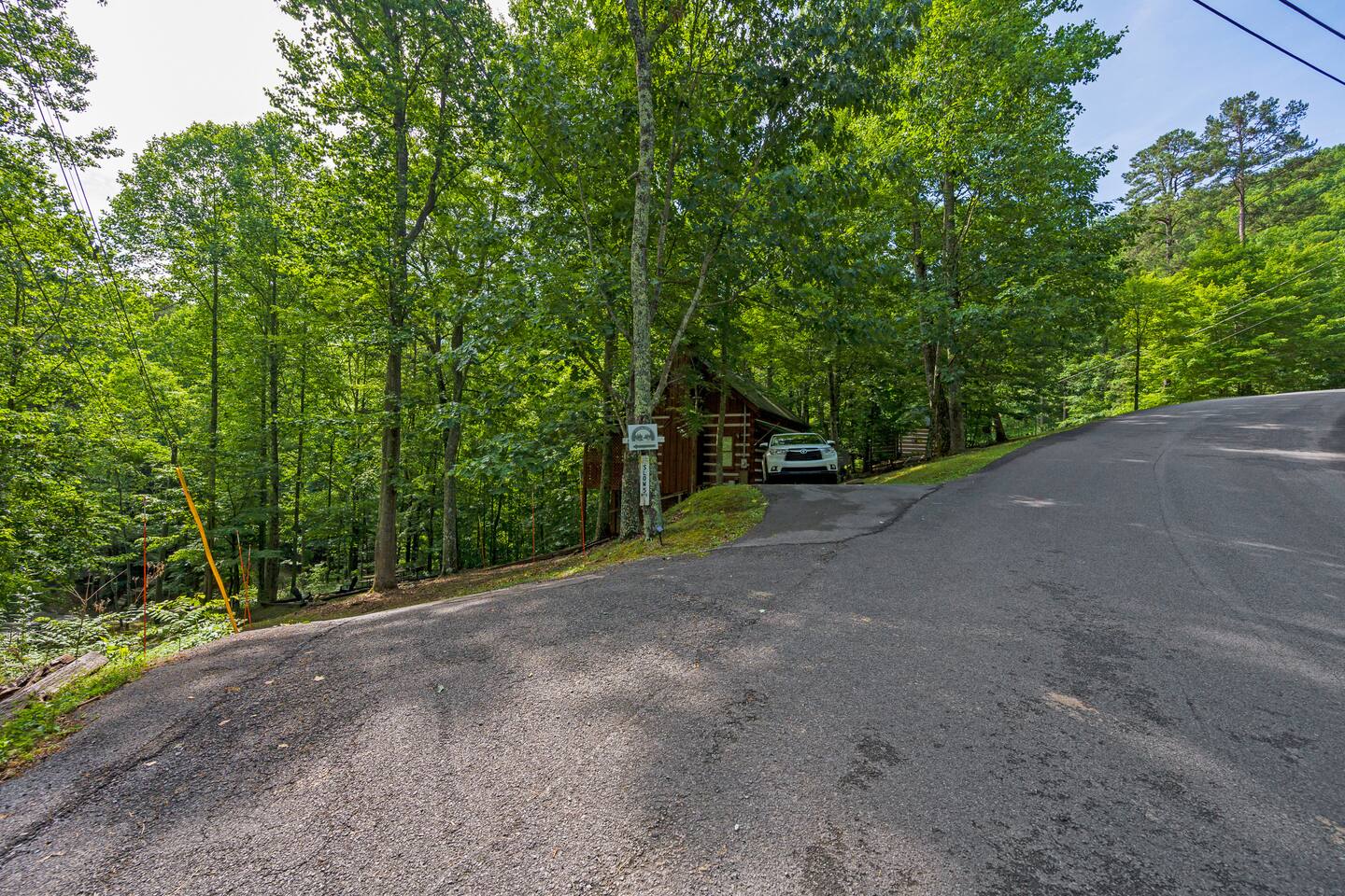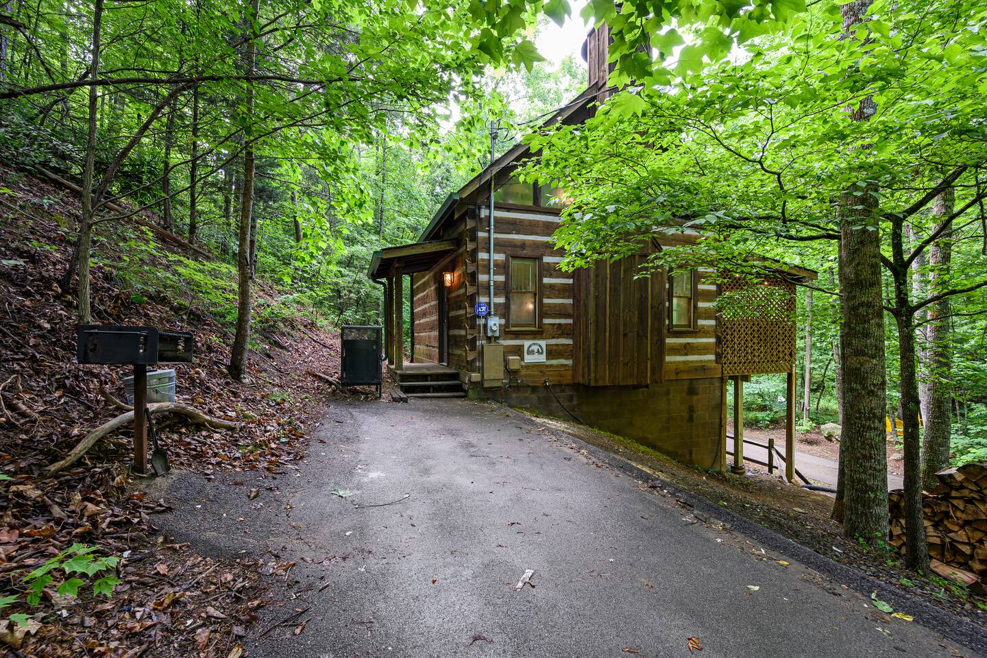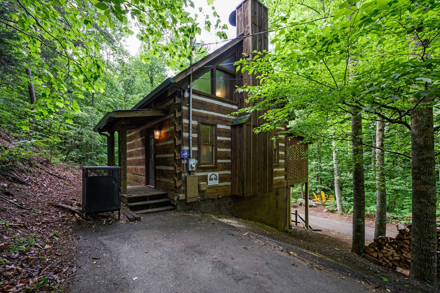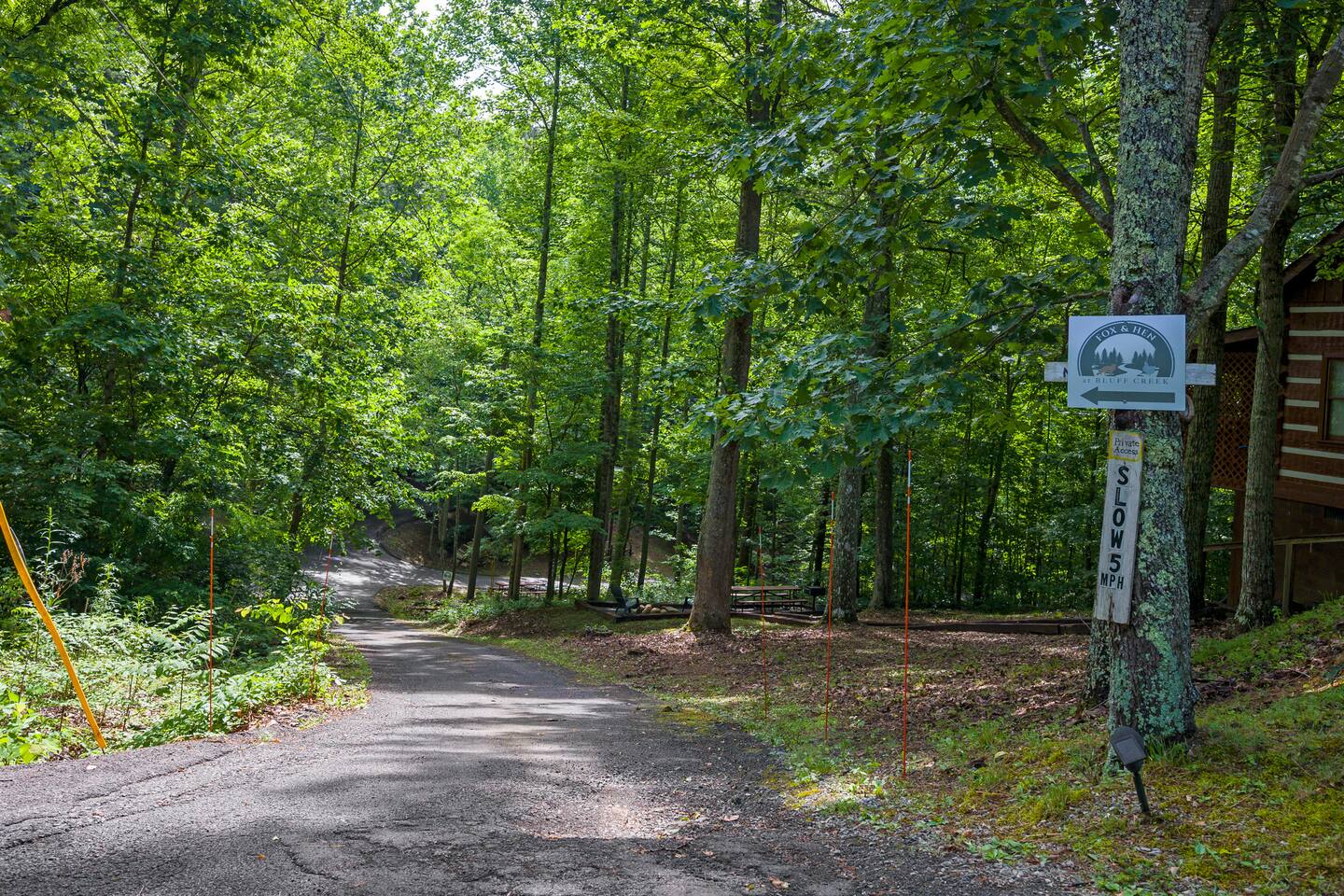 We are on our own private road which has a slightly steep entry and marked with orange reflective poles to assist. Since we’re in the Smoky mountains you may see wildlife including bears, racoons, wild turkeys and other critters. Please don’t feed them.