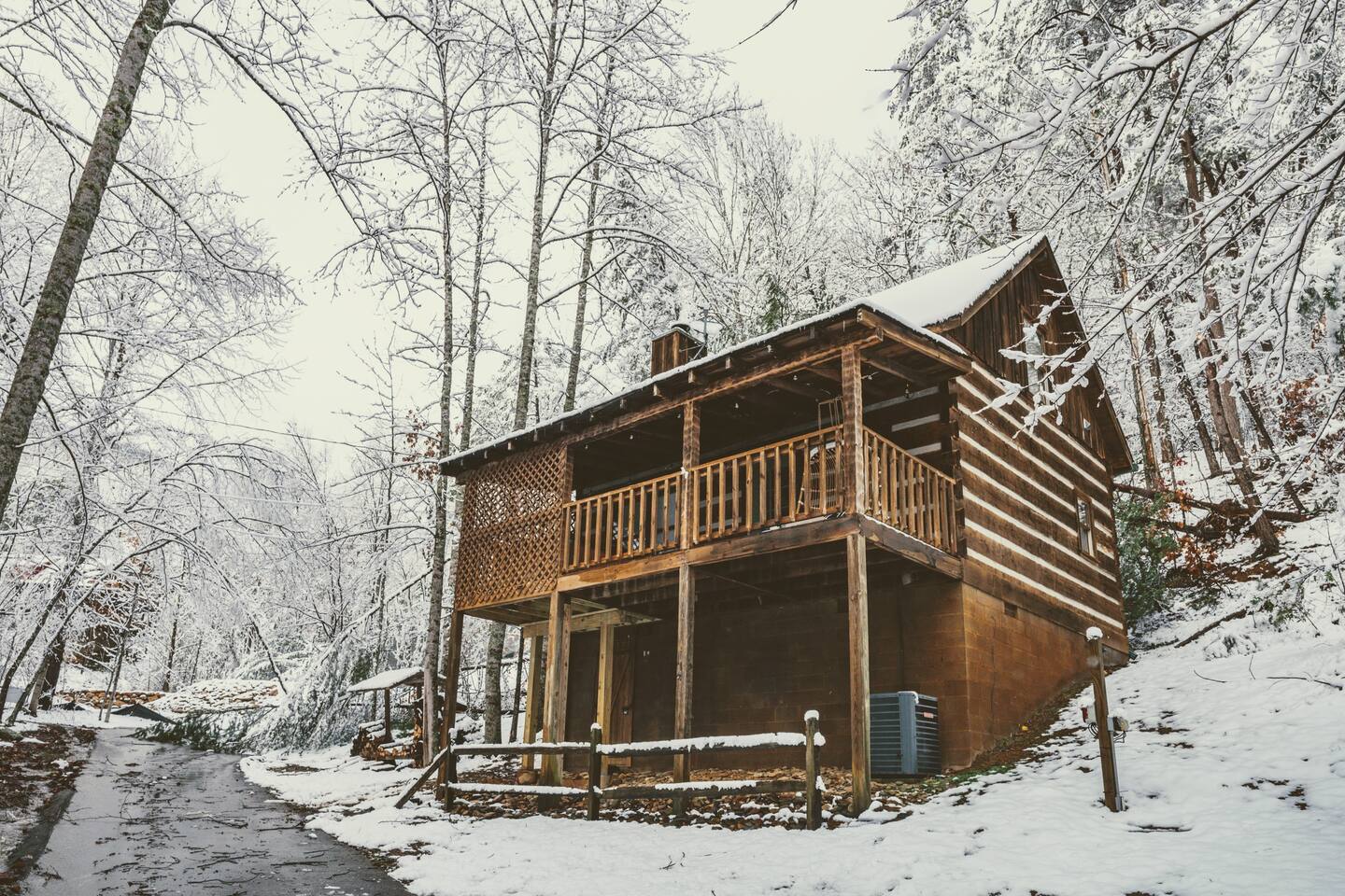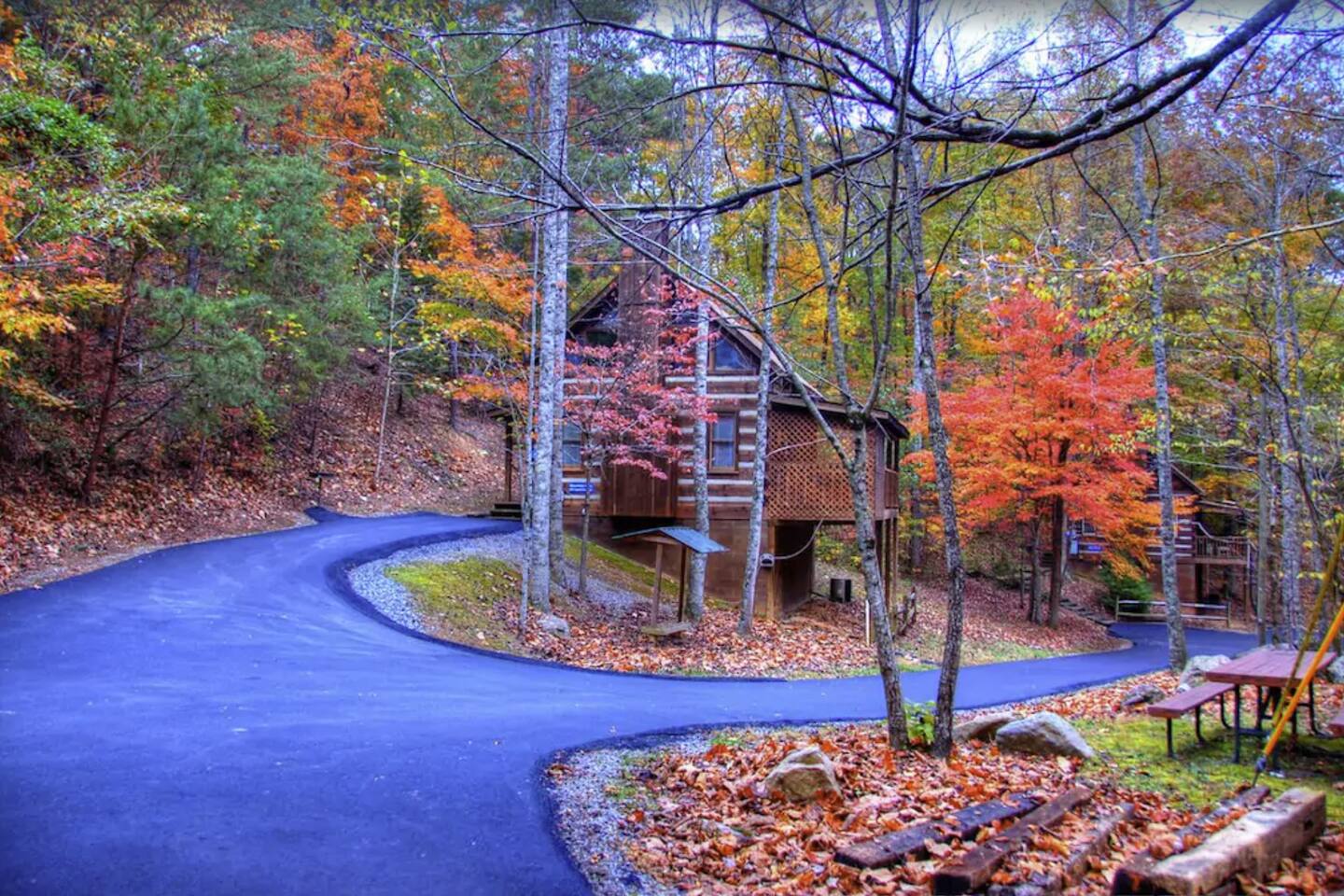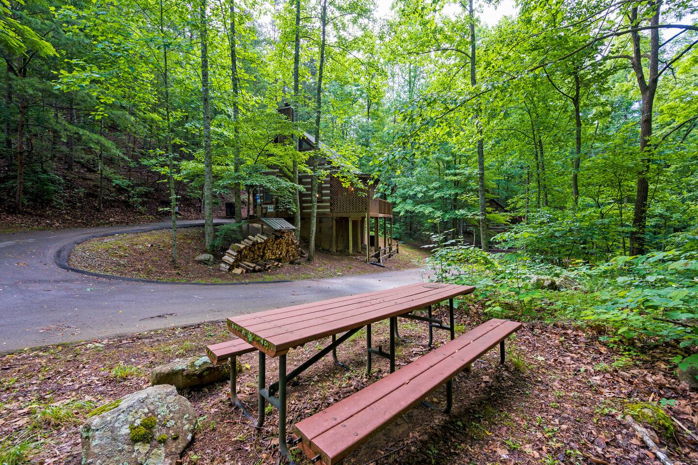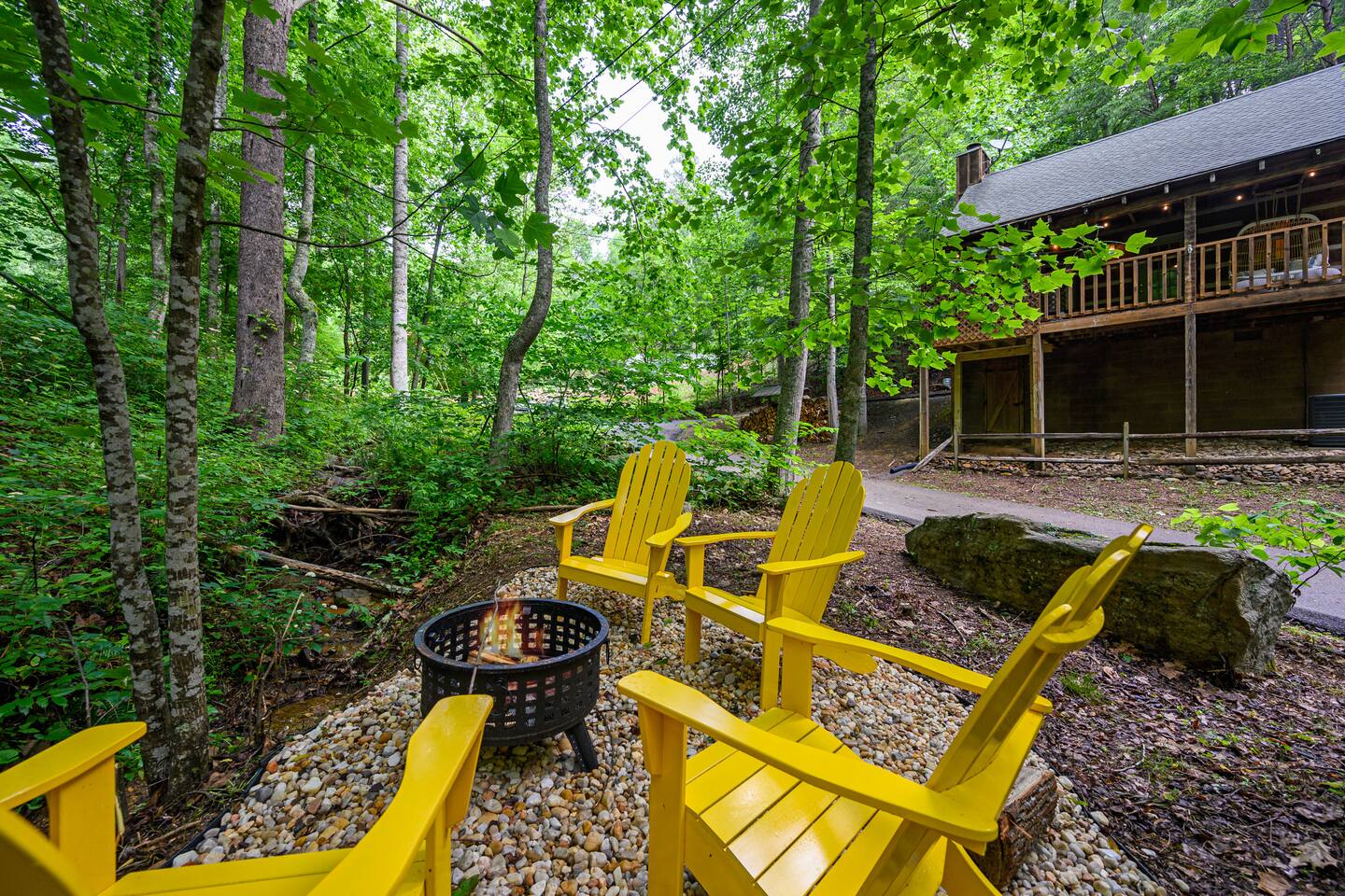We are on our own private road which has a slightly steep entry and marked with orange reflective poles to assist. Since we’re in the Smoky mountains you may see wildlife including bears, racoons, wild turkeys and other critters. Please don’t feed them.