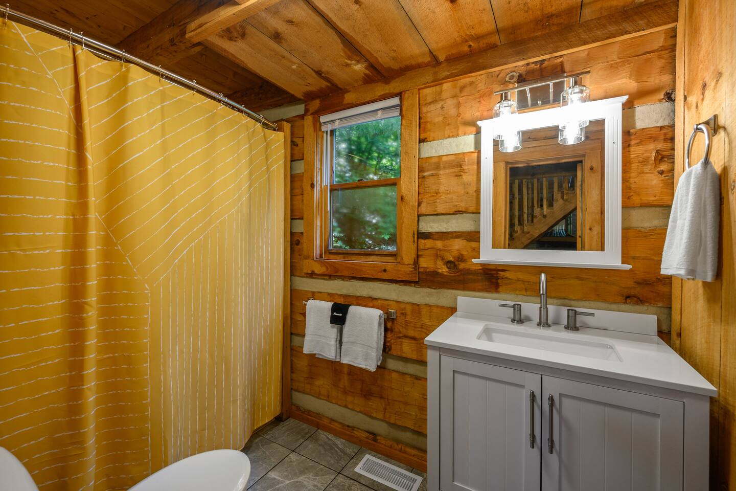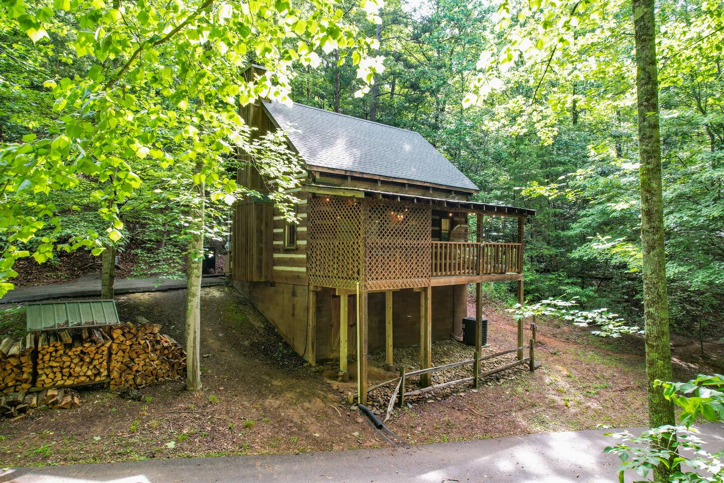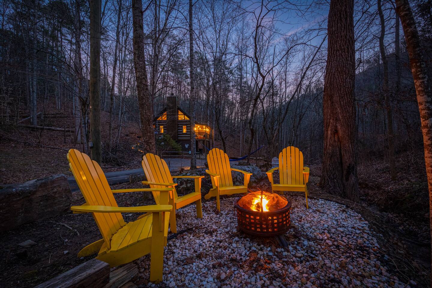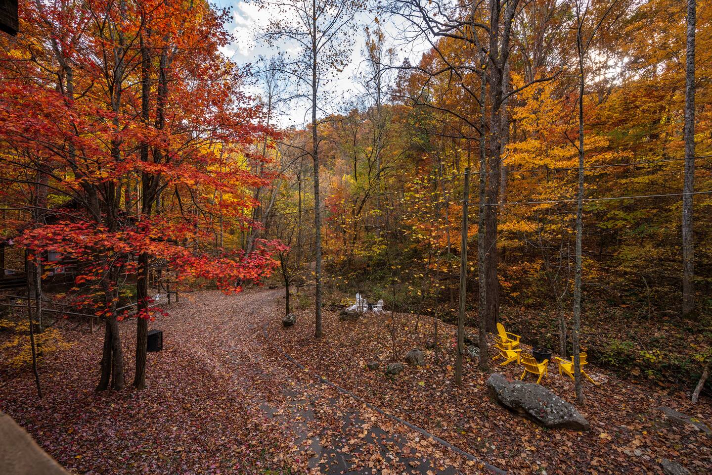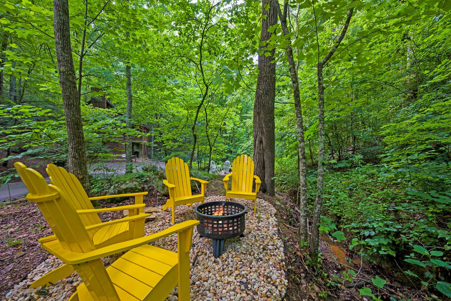 We are on our own private road which has a slightly steep entry and marked with orange reflective poles to assist. Since we’re in the Smoky mountains you may see wildlife including bears, racoons, wild turkeys and other critters. Please don’t feed them.