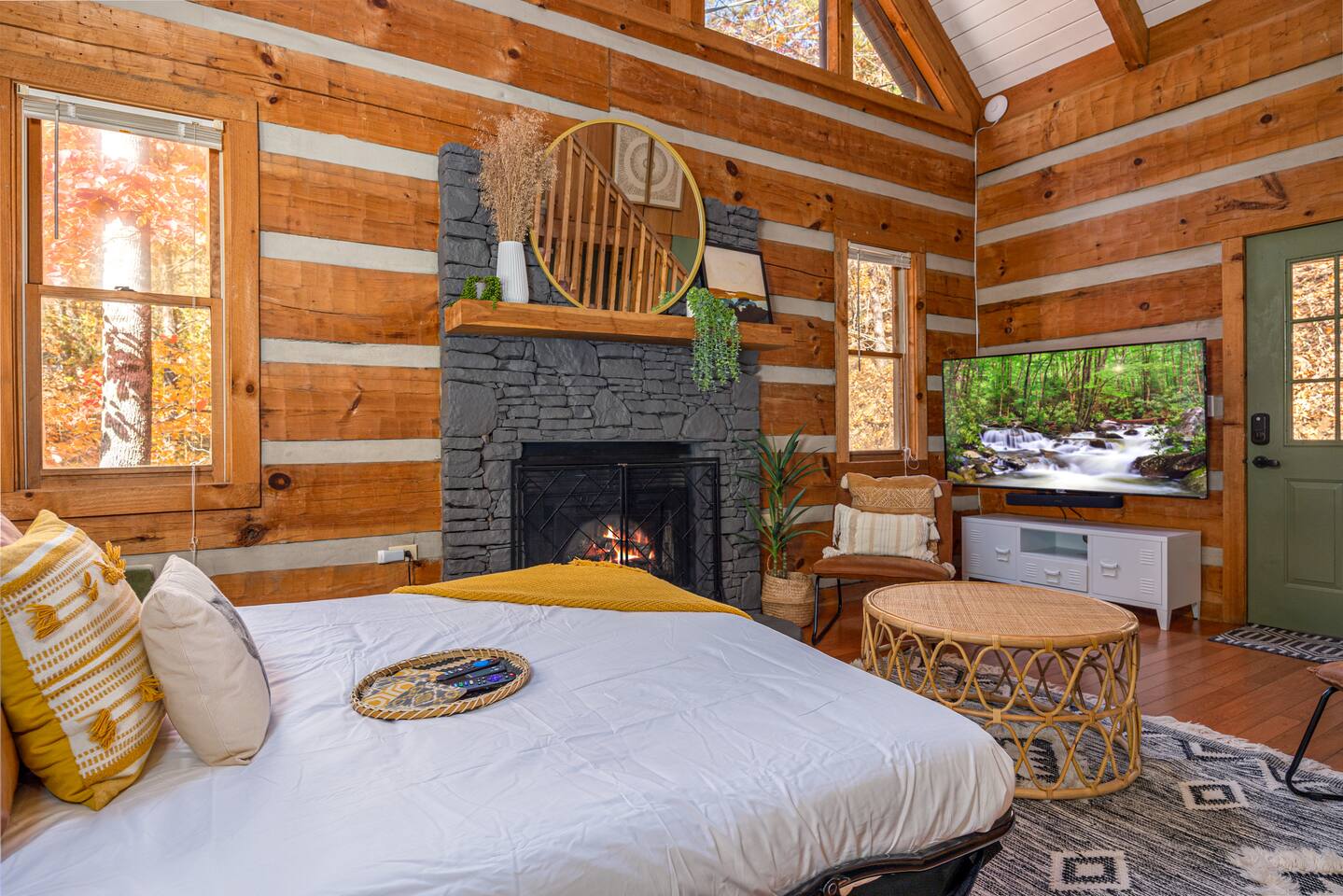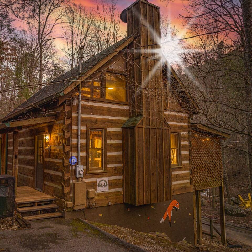 Welcome to your true log cabin getaway-Fox Bluff Creek. Tastefully designed w/Boho vibes to elevate your Smoky Mountain escape. Guests love the unique style, attention to detail & fun extras (Super Nintendo)- "AN IDEAL COUPLES GETAWAY." Tucked into a nicely wooded plot, Fox is your private 1 bedroom loft 1.5 bath cabin oasis- only minutes to downtown Pigeon Forge. Complete with curated indoor & outdoor amenities to provide an ideal, romantic & memorable escape for you & your special someone.