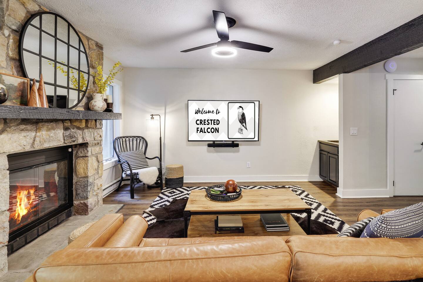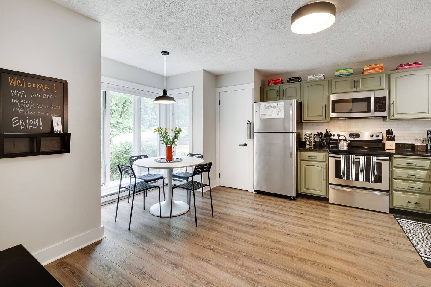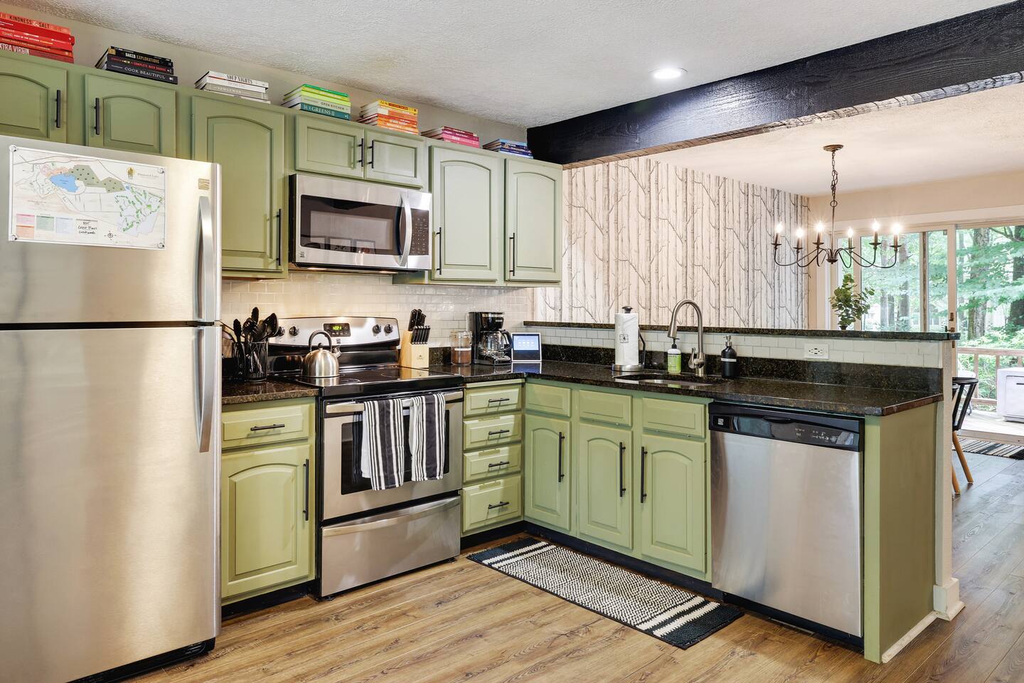 A redefined lakeview townhome designed for discerning families and groups who value comfort, design, and direct access to resort-quality amenities. Enjoy top-tier seasonal offerings via included private club membership — all just a short walk away: ✦ Oversized outdoor pool with slide, Baja ledge, and lap lanes (open late June–Labor Day) ✦ Sandy beach with lake swim dock ✦ 8 pickleball courts and 6 Har-Tru tennis courts ✦ Access to a par-72, 18-hole golf course (green fees apply) ✦ Private clubhouse dining The Home You’ll park steps away in two dedicated spots — including one with a complimentary Level 2 EV charger — and enter a spacious two-story home fully equipped for relaxing, entertaining, and working remotely. ►►►Main Level Features◄◄◄ ➜ Fully renovated kitchen with olive cabinetry, granite counters, and stainless steel appliances ➜ Live-edge dining table seats 8 comfortably ➜ Living room with buttery leather seating ➜ Electric fireplace with auxiliary heat ➜ 65" 4K Roku Smart TV with Sonos soundbar ➜ Wet bar and coffee station ➜ Powder room off the entry hall ➜ Multispeed Ceiling fan ➜ Individually wall-controlled Minisplit HVAC with A/C & heat ★★★★★ Lakeside deck ★★★★★ • Bistro table for two • Conversation chairs + side table • 3-burner Weber propane grill • Propane fire pit • Outdoor games and spare propane tank stored in closet ►►►Upper Level Sleeping Quarters◄◄◄ All three bedrooms feature cathedral ceilings, zoned ductless mini-split heating and cooling, ceiling fans, remote-controlled tower fans, personal Sonos speakers, and fast-charging USB ports. ★★★★★ Primary Suite (Sleeps 2)★★★★★ ➜ King canopy bed with luxury bamboo blend linens and cool-gel memory foam mattress ➜ 65” 4K Roku Smart TV with Sonos soundbar ➜ Auxiliary heat & cozy ambiance electric fireplace ➜ Private office desk setup with task lighting and USB ports ➜ Private coffee station with Keurig & essentials ➜ Ensuite bath with oversized rain shower + bidet ➜ Full closet with mini fridge, safe, steamer, and hamper ➜ Multispeed Ceiling fan ➜ Individually wall-controlled Minisplit HVAC with A/C & heat ★★★★★ Queen Bedroom (Sleeps 2)★★★★★ ➜ Queen bed with cool-gel memory foam mattress & bold green accent wall ➜ White bamboo blend linens ➜ Bedside charging stations and Sonos One ➜ Multispeed Ceiling fan ➜ Individually wall-controlled Minisplit HVAC with A/C & heat ★★★★★ Bunk Room (Sleeps 5)★★★★★ ➜ Double full bunk beds with twin trundle ➜ Bedside USB charging station ➜ Window seat ➜ Kid tent ➜ 55" 4K Roku Smart TV with Sonos soundbar ➜ Retro Pac-Man arcade game ➜ Multispeed Ceiling fan ➜ Individually wall-controlled Minisplit HVAC with A/C & heat A shared hallway bathroom with tub/shower combo serves the Queen and Bunk rooms, and a full-size LG washer/dryer with detergent is conveniently located at the end of the hall. ►►►Kitchen & Culinary Comforts◄◄◄ Whether you're prepping family meals or enjoying a quick breakfast, the kitchen is stocked for ease and comfort: ◻ Drip coffee maker (filters included), Keurig, pour-over pot, coffee bean grinder + complimentary ground coffee blend ◻ Full cookware set, Instant Pot, toaster, griddle, waffle maker, blender, air fryer, tea kettle, knives, cutting boards & kitchen gadgets ◻ Table service for 12 ◻ Pantry basics like spices, oils, baking essentials, and storage wrap ►►►Tech, Games & Comforts◄◄◄ ◻ Mesh Wi-Fi with blazing 400MB download speeds / 20MB upload ◻ 3 Smart TVs with Roku (Living Room, Primary Suite, Bunk Room) ◻ 4 Sonos zones (Living Room + all 3 bedrooms) ◻ Amazon Echo Show with Alexa voice assistance ◻ Charging stations and USB-integrated outlets at every bedside ◻ Board games, books, toys, high chairs, Pack & Play/travel crib with sheet ◻ 6 Tommy Bahama backpack beach chairs + beach umbrella & cooler ◻ 4 full-size umbrellas for rainy days ►►►Community & Location◄◄◄ Located in the Pinecrest Golf and Country Club community, you’ll have easy seasonal access to: Golf, tennis, pickleball, basketball, lake swimming, and pool Auxiliary parking 1,500 feet from the unit if needed The Crested Falcon is extremely close to activities for adults or the entire family. Our digital welcome guide will provide you information about the home and the community. Nearby area highlights include: - Kalahari Waterpark (13 mins away) - Jack Frost Ski Resort (18 mins away) - Mt Airy Casino (17 mins away) - Camel Beach & Aquatopia (18 mins away) - Pocono Raceway (12 mins away) - Mountain Creek Riding Stables (20 mins away) - Whitewater Challengers Rafting (38 mins away) - Tannersville Premium Outlet Shopping (21 mins away) - Stock Car Racing Experience (17 mins away) - Pocono Whitewater Rafting (29 mins away) - Skytop Ziplining (33 mins away) Provided Essentials Cleaning & Hygiene: ─ Bamboo blend linens, Quality cotton towels, dedicated lake/pool towels ─ Toilet paper, paper towels ─ Meyer's brand soaps and detergents ─ Hair dryer, iron, steamer ironing board, dish sponge, trash bags Kids & Extras: ─ Pack & Play / Travel Crib with sheet ─ High chair conversion kits ─ Toys, games, and books Outdoors: ─ Grill tools ─ Beach and lake day gear (chairs, cooler, umbrella) ─ Covered lakeview deck with fire pit and comfy seating We welcome adults that are 29 years or older (or traveling with their families) and require a signed rental agreement to fully confirm your booking that will include a copy of your government issued ID. Tobyhanna Township Ordinance STR Capacity Limit 8 for stays 30 days or less. Monroe County Hotel Room Excise Rental Tax # XX-X892. PA State Sales Tax License # XXXXX790. Tobyhanna STR Permit # 016448.