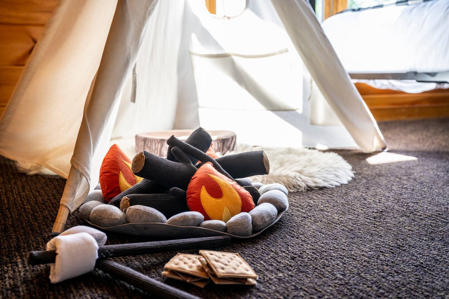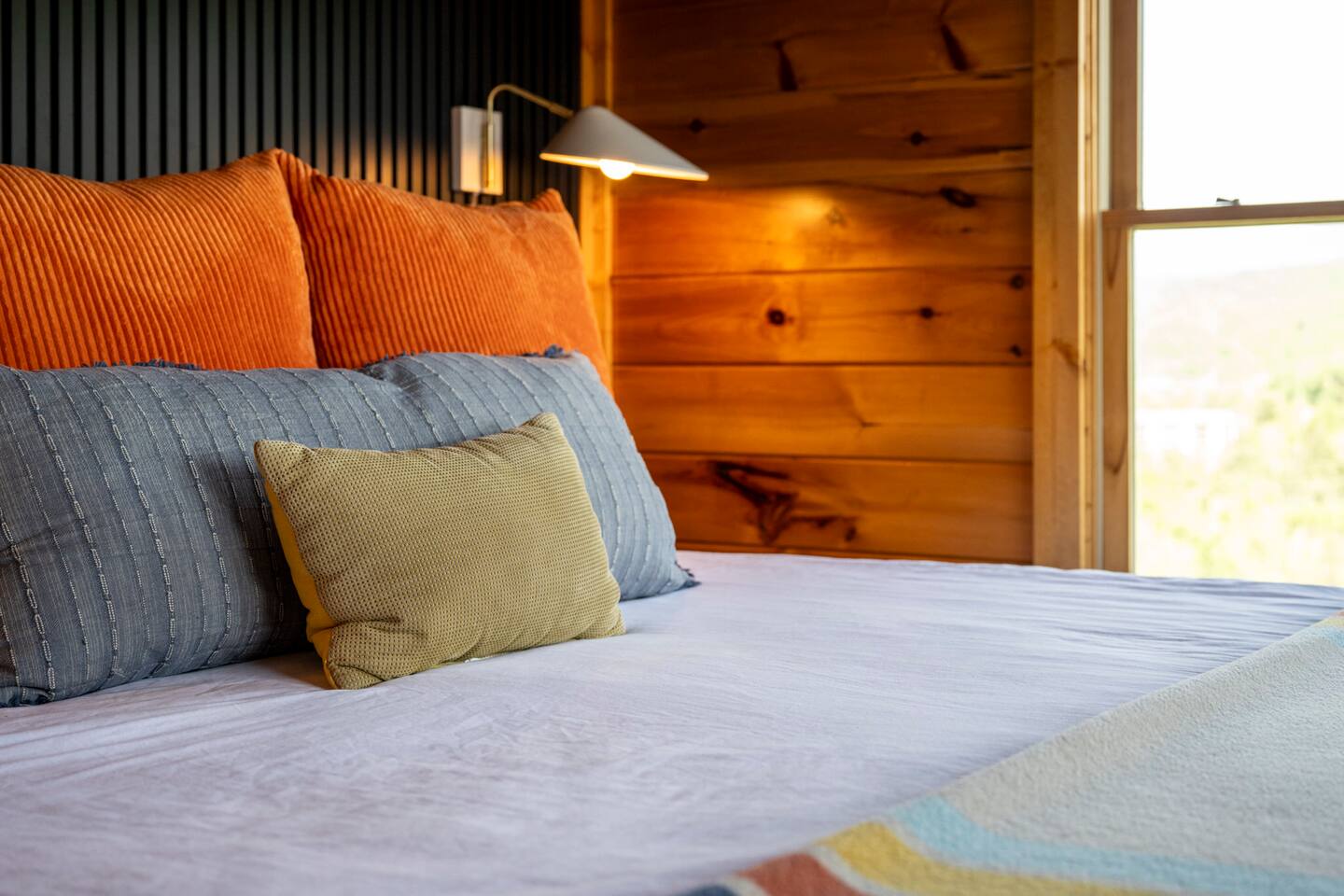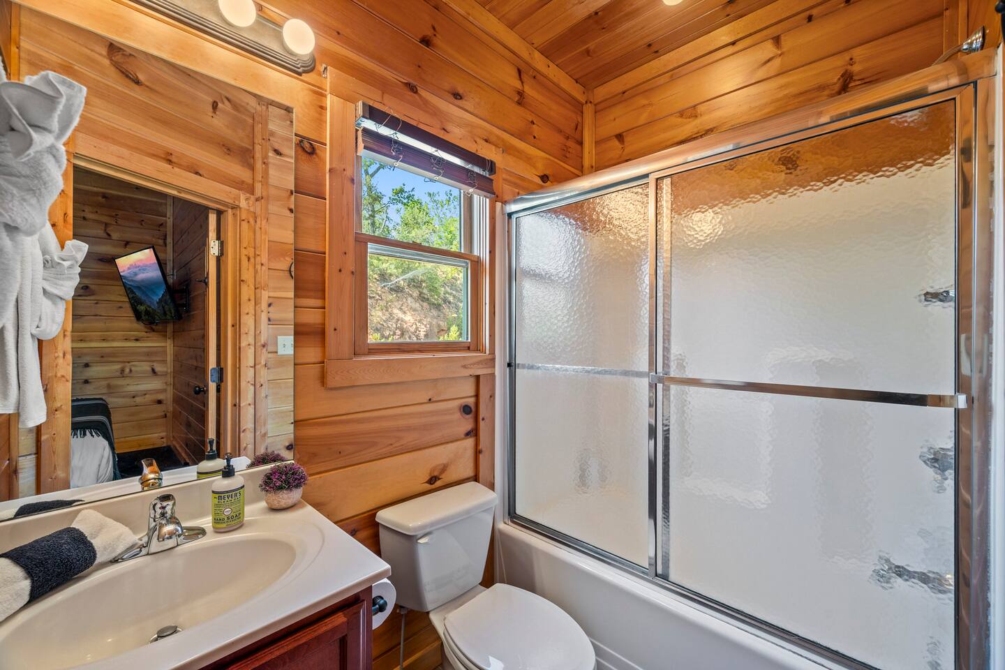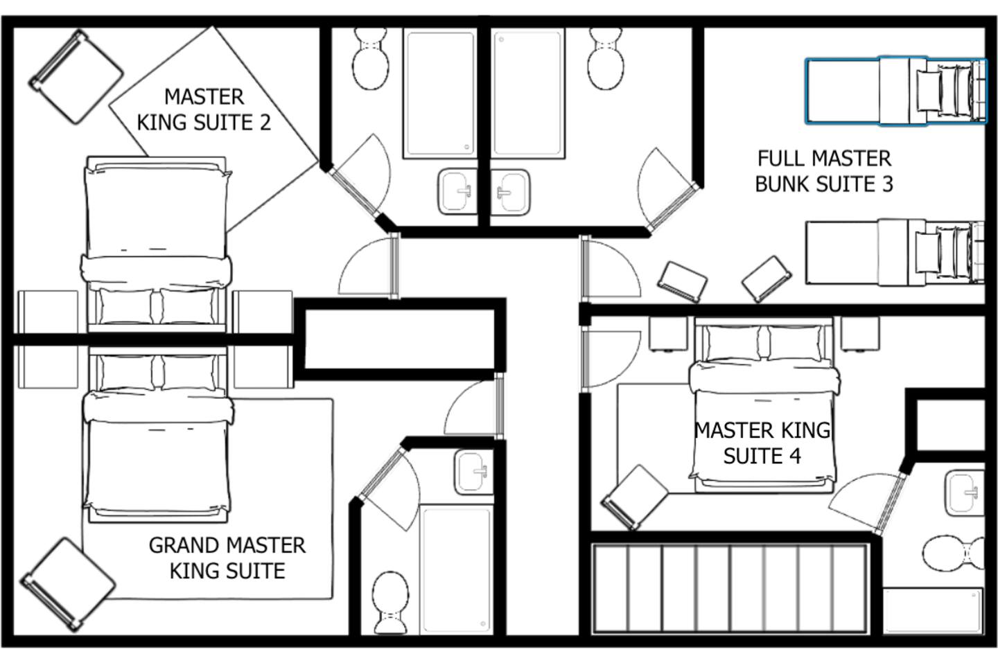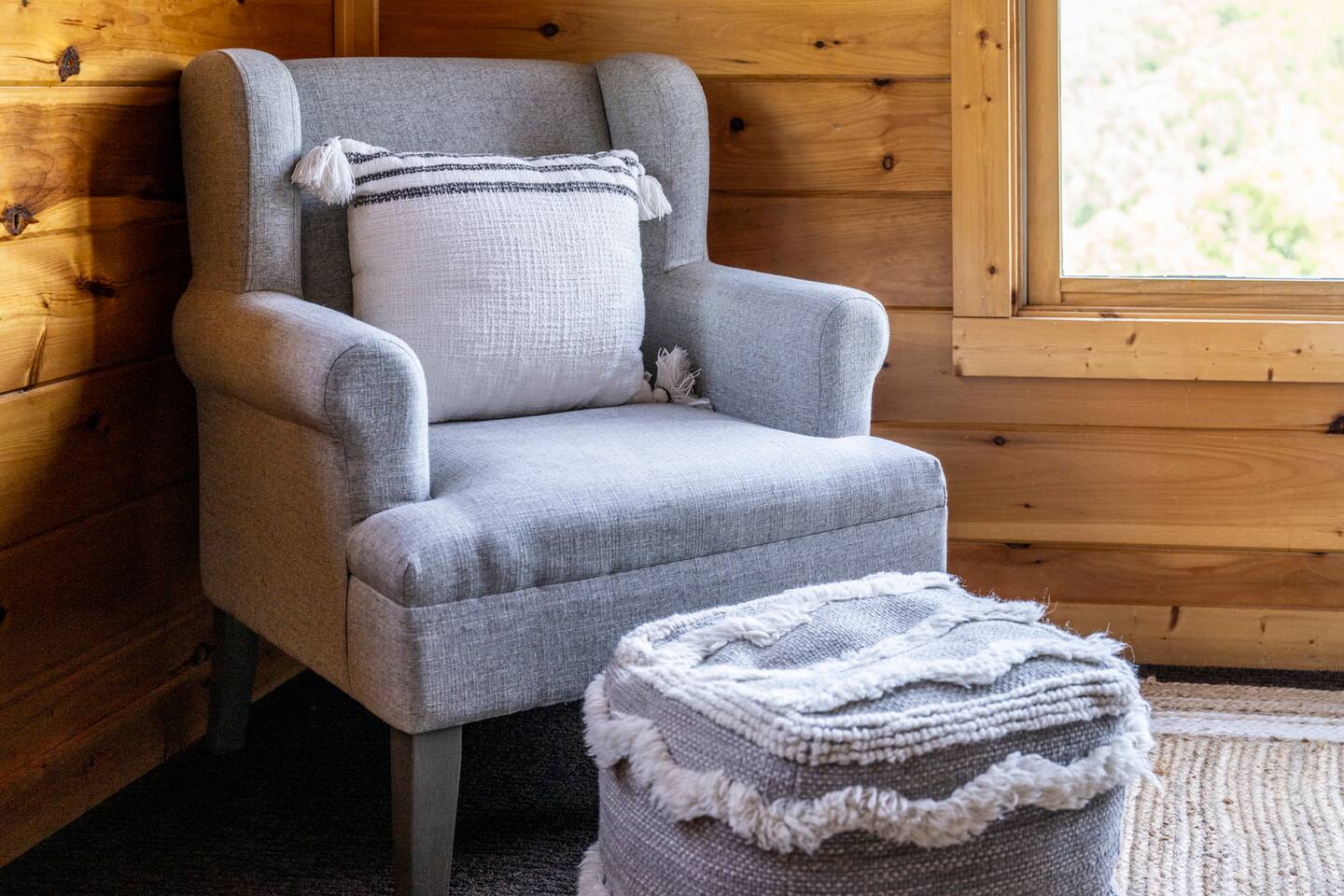 A modern farmhouse inspired cabin in the Gatlinburg Falls Parkview community designed for families traveling together that enjoy the creature comforts of home and a smart design aesthetic (upgraded winter '20). An easy drive just minutes from downtown Gatlinburg up gradual hills (not steep twisty drives like other cabins) along all paved roads that will immediately surprise you with glorious Smoky Mountain Views from all directions (including a Space Needle peek from our entry deck). Four master bedrooms all with private en-suite bathrooms and an entire gaming floor including a dedicated 9 person theater! LIVING SPACE: Our great room is on the main entry level and has a full size extended dining table with comfortable seating for at least 10. Additional seating is easily available at the island in the adjacent kitchen. The living room has a large sofa, a loveseat and and two side chairs arranged around the safe electric fireplace, 55" 4K Smart TV, blu-ray player and Sonos Beam Soundbar speaker. COOKING SPACE: The extra-large kitchen has a full size refrigerator and freezer, electric range/oven, microwave, dishwasher and sink with garbage disposal. There is ample storage made available during your stay so you can stock up easily and cook for your friends and family inside or out (large charcoal grill available directly next to our entry deck). GAMING SPACE: We're pleased to offer many fun games and activities during your stay. Grab a drink from the dedicated beverage cooler next to the leather pull-out couch and challenge a friend to any of the great games. We've outfitted the game floor with incredible creature comforts including head-to-head Pop-A-Shot basketball, full size regulation pool table, air hockey, chess/checkers table, full-size Multicade arcade game with 20+ arcade classics, 65" 4K Smart TV with cable and streaming choices. Directly next to the open gaming space you'll find a 9-person, stadium seating theater complete with a projected 125" screen and Dolby Digital THX Surround Sound. Watch a dizzying array of movies from our private Plex media server or stream from one of the many services available for access including Netflix, Hulu, Amazon Prime and more. Directly outside on the game floor deck you'll find our new 7 person hot tub with an incredible view of the Great Smoky Mountains and additional rocking chairs for relaxing. SLEEPING SPACE: We've outfitted all bedrooms to maximize you privacy, comfort and conveniences. Each room will have a wall-mounted 55" or 65" Roku 4K Smart TVs complete with cable and streaming access, a ceiling fan and individual bedside A/C + USB-C/A charging stations. A closet includes hanging shelves, clothing hangers and a luggage rack with laundry basket. Each individually designed bed features a cool-gel memory foam mattress, a stylish throw, decorative pillows and is fitted with luxurious, eco-friendly bamboo blend linens with two pillows per person (including soft and firm choices). Connected privately to each bedroom is a full en-suite bathroom with combination shower/tub with body sprayers and toiletries including complimentary hand-selected body wash, shampoo and conditioner. ★★★★★ Alpine Suite ★★★★★ The spacious grand master king bedroom (accommodates 2 people) is entered on the left and has North and East facing windows overlooking majestic views of the Great Smoky Mountains all the way to the Carolinas. Inside you'll find a comfy wingback chair, individual nightstands and reading lamps - perfect for a late night read and a glass of wine. ★★★★★ Summit Suite ★★★★★ The second bedroom to your left is also a large master king with windows facing East and South for incredible unobstructed views of the Great Smoky Mountains surrounding Gatlinburg and Anakeesta (accommodates 2 people). Individual nightstands flank each side of the bed as well as a plush barrel chair perfect to curl up with a book while the sun sets. ★★★★★ Vista Suite ★★★★★ The first bedroom to your right at the top of the stairs is a master king bedroom facing West with lush foliage on the bluff adjacent to the cabin. This bedroom includes individual nightstands on each side of the bed as well as a soft side chair to relax in. ★★★★★ Cub Den Bunk Suite ★★★★★ Entering the second room on your right, the kids (or additional adults) get first class treatment in the bunk room where dual full size bunk beds give them ample sleeping room (accommodates 4 people). South and West facing windows give you a view of the Gatlinburg Space Needle along with the Smoky Mountains surrounding downtown. A whimsical tent at the foot of the beds gives the kids a private hideaway for maximum relaxing. The entire home has Mesh WiFi with 250MB down high-speed internet for fast speeds for all of your devices. PARKING: On-site parking for up to four vehicles directly in front of the cabin is available. Level 2 Fast EV Charging station available for use during your stay. Up the Ante TN Cabin is extremely close to activities for adults or the entire family. Our digital welcome guide will provide you information about the home and the community. OTHER THINGS TO NOTE: By The Stats - General Starter Items provided at the house HYGIENE & CLEANING : • Cozy and complete Bamboo bed linens and pillows • Egyptian cotton bath towels and hand towels per person • 3 rolls of toilet paper per bathroom • 3 rolls of paper towels • Meyer's Hand soap, dish soap, dishwasher soap, laundry detergent, body wash, shampoo & conditioner • 1 dish sponge • 4 garbage bags • Hair dryer • Steamer COOKING & CULINARY CONVENIENCES : • Complete table service for 12 guests • Programmable coffee maker & combination Keurig + complimentary custom blend ground coffee (filters included) • Tea Kettle • Pots and pans • Toaster & Waffle Iron • Blender • Large serving bowls and a salad bowl • Additional items typically include salt, pepper